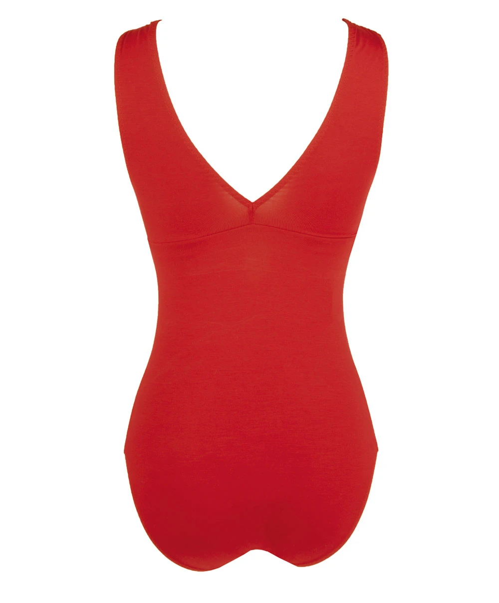 -Body sans manches ofrant une coupe essentielle associée à une ligne de décolleté plongeante en V (tout comme le dos qui présente également un V) dans le but de se faire le plus discret possible sous n’importe laquelle de vos tenues. Le décolleté s’y pare d’une sublime dentelle Leavers florale ton-sur-ton pour un côté très romantique. Au niveau de la culotte, les designers ont imaginé une coupe classique suffisamment enveloppante pour votre confort et votre rassurance.
