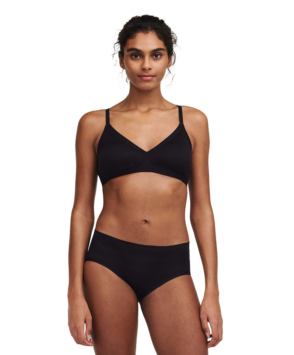 Shorty à rayures texturées collection Soft Stretch Stripes coloris noir de chez Chantelle Paris.
