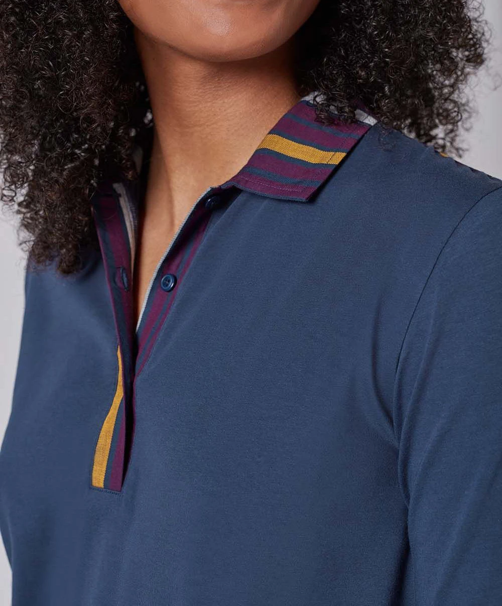 Coloris : Darkblue (S063) : un joli coloris bleu foncé associé à des rayures bleues ciel et jaunes moutardes pour une élégance paisible.