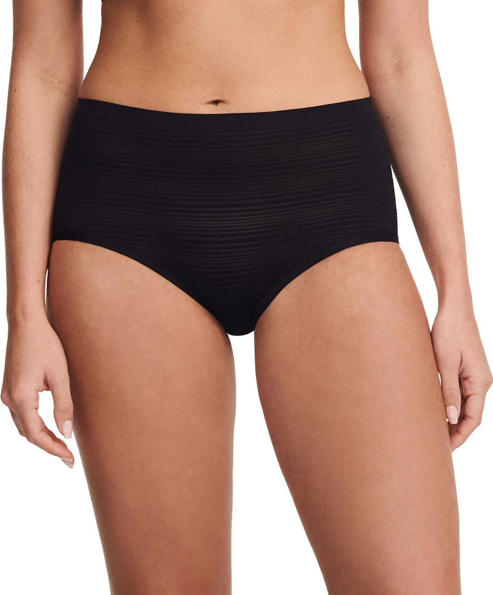 Culotte haute à rayures texturées collection Soft Stretch Stripes coloris noir de chez Chantelle Paris.