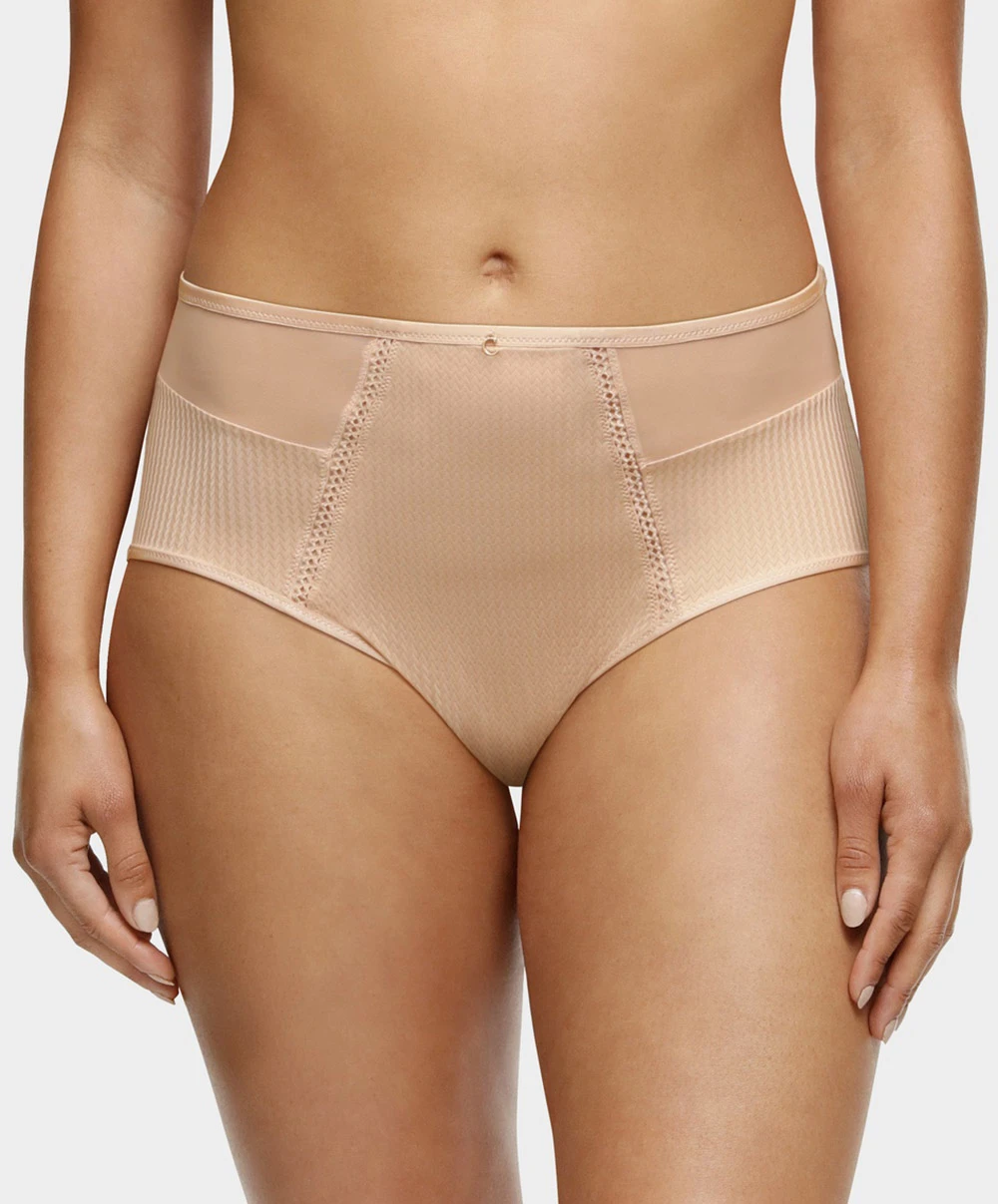 Culotte taille haute maintien collection Chic Essential coloris beige doré de chez Chantelle Paris.