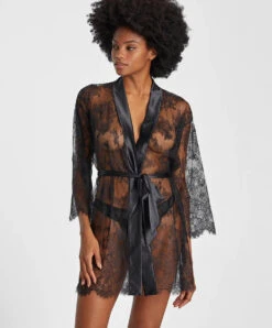 So exclusive ! Un kimono sexy qui déploie son pouvoir séduction dans une dentelle ajourée laissant entrevoir la beauté de la silhouette féminine.