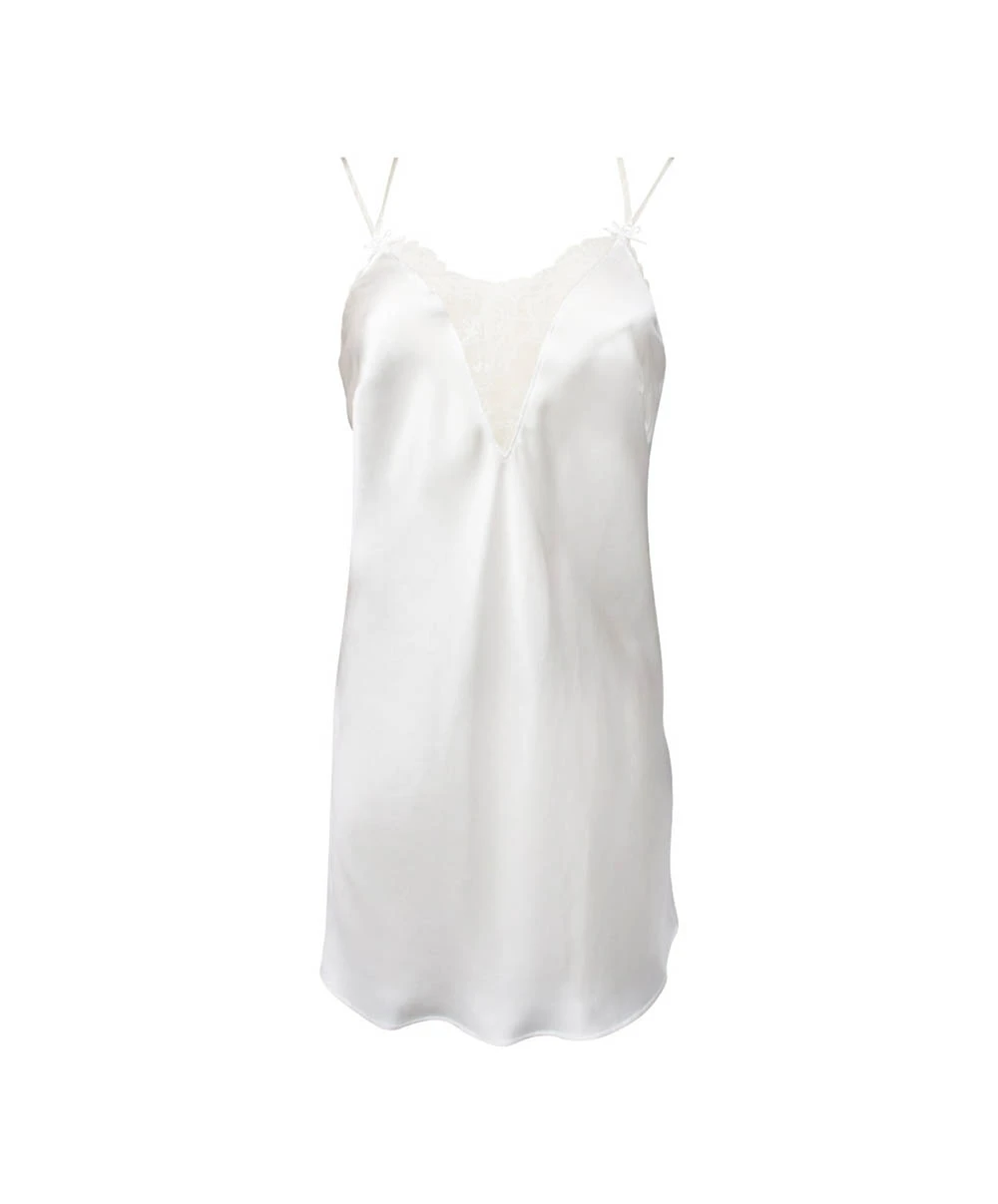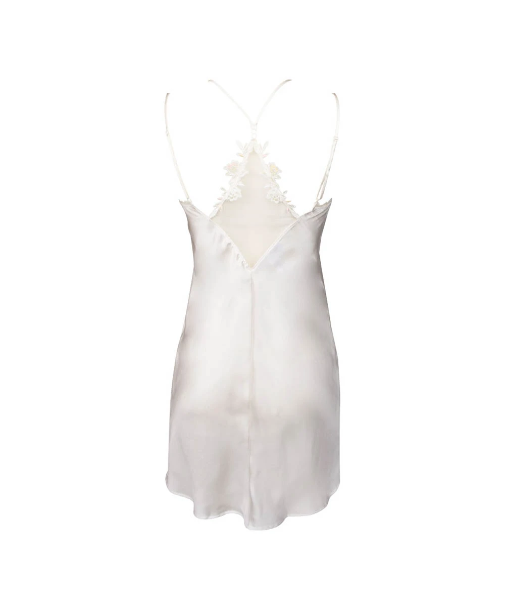 Envie d’une tenue séduction ? Cette nuisette lise charmel en satin de soie et légèrement évasée sur le bas est un plaisir à porter en toutes circonstances. Decolleté plongeant devant et dos en tulle invisible souligné par deux motifs. Longueur dessus du genou.