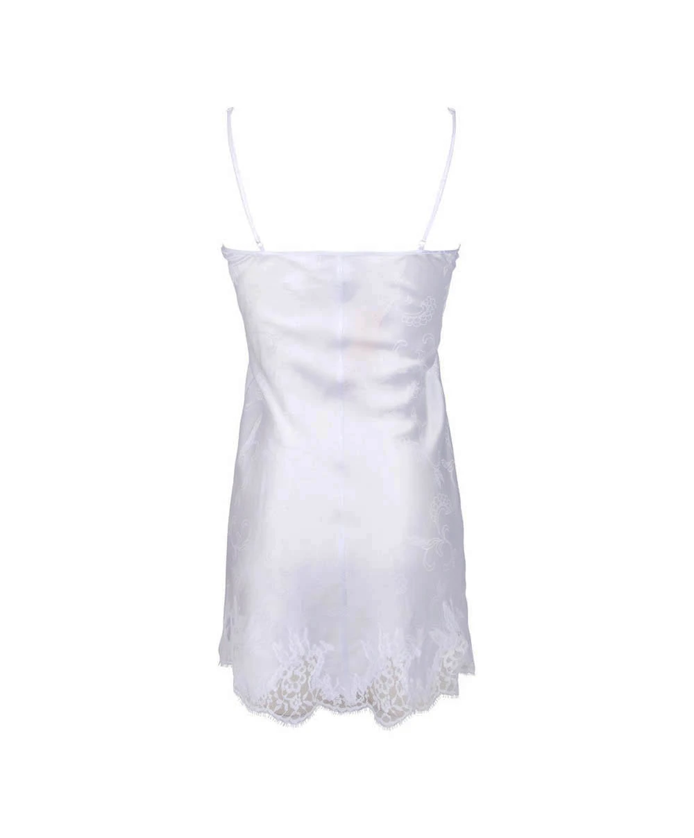 Nuisette en soie Lise Charmel collection Acanthe Arty. Cette pièce de lingerie de charme en satin de soie jacquard offre un motif unique de feuilles d’acanthes riches et luxuriantes. Pour cette création Lise Charmel a choisi une matière noble qui épousera les courbes de votre corps telle une seconde peau pour un confort inégalé et une allure lumineuse et féminine. Le bas de cette nuisette de soie ainsi que son décolleté sont décorés d’une sublime dentelle fleurie pour une féminité aérienne. Côté pratique, vous trouverez deux fines bretelles satinées réglables pour un fit parfait.