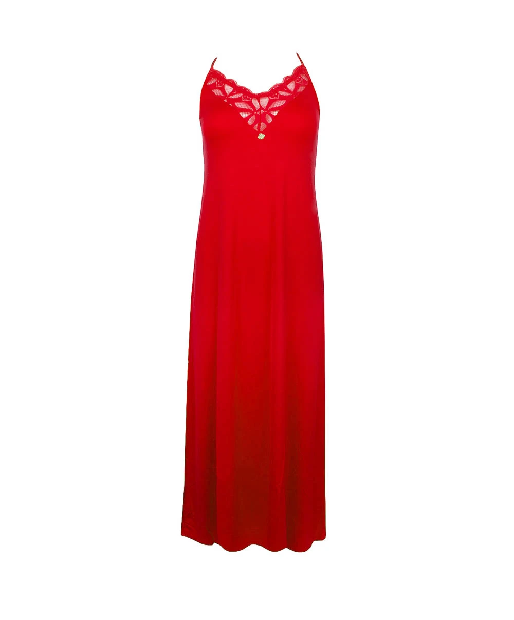 -Cette nuisette Antigel offre une coupe très longue jusqu’aux chevilles (un peu à la façon d’une robe de soirée) et un décolleté en V assez plongeant habillé de dentelle pour un design au glamour assumé.