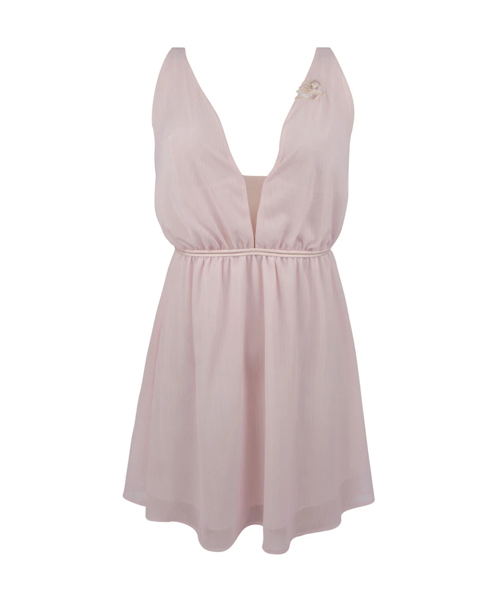 -Cette nuisette sexy offre une coupe plutôt courte (mi-cuisses) dans le style d’une robe/toge antique avec ses mancherons très courts pour une séduction assumée et un élégance décuplée. Le joli décolleté en U, orné d’une fleur brodée à gauche, dissimule un maintien invisible sous poitrine dans la doublure.