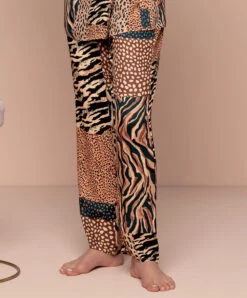-Vêtement d’intérieur fabriqué à partir de viscose issue de fibres naturelles ultra douce et extensible pour un bien aller parfait et un confort sans égal. L’imprimé ultra-originale offre un patchwork d’imprimés animaliers (tigres, girafes, panthère,…) pour prendre la vie du côté suavage, tous dans les tons ocres et bruns qui s’assortira parfaitement avec lesdessous et vêtments cuivrés de la collection.