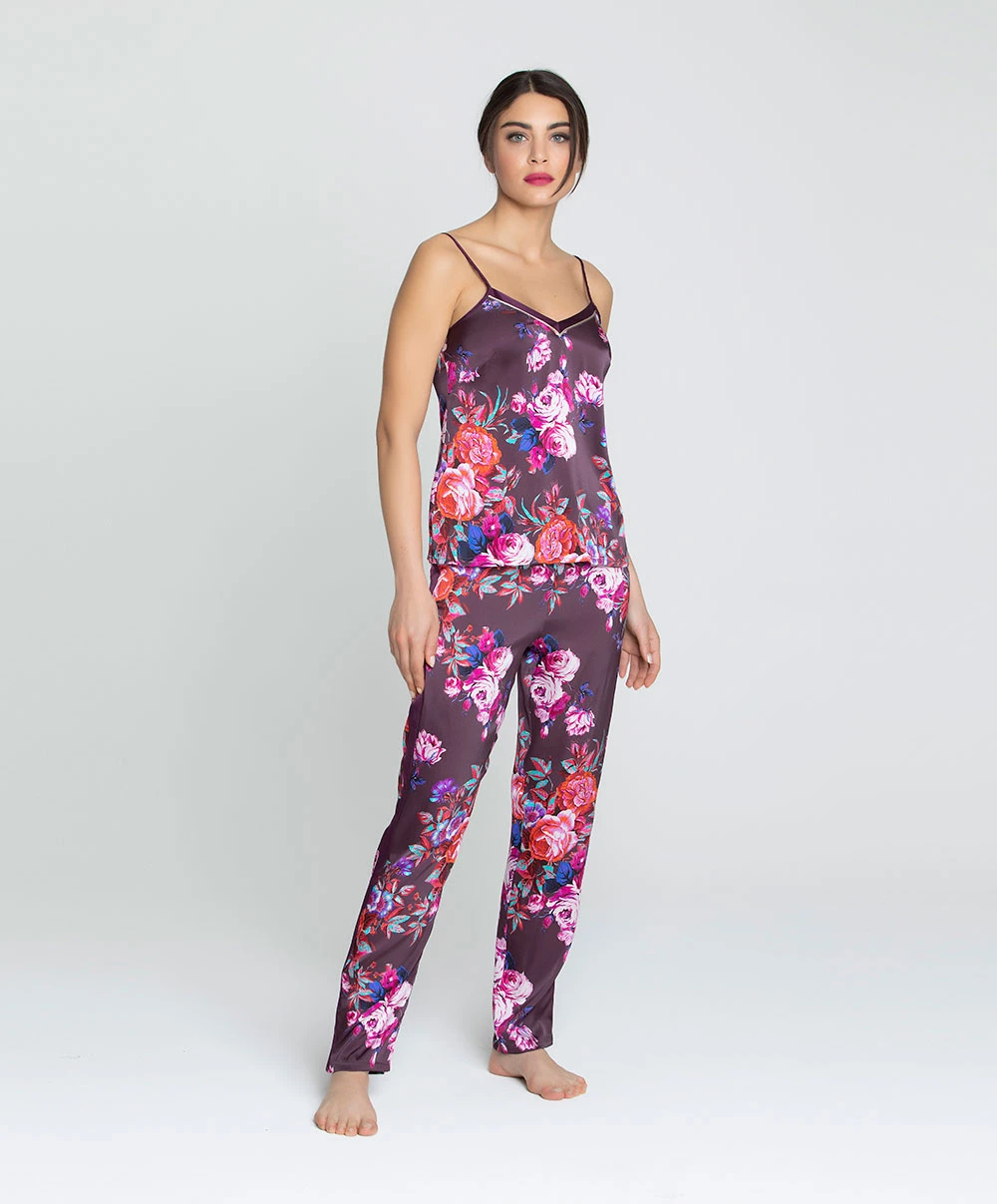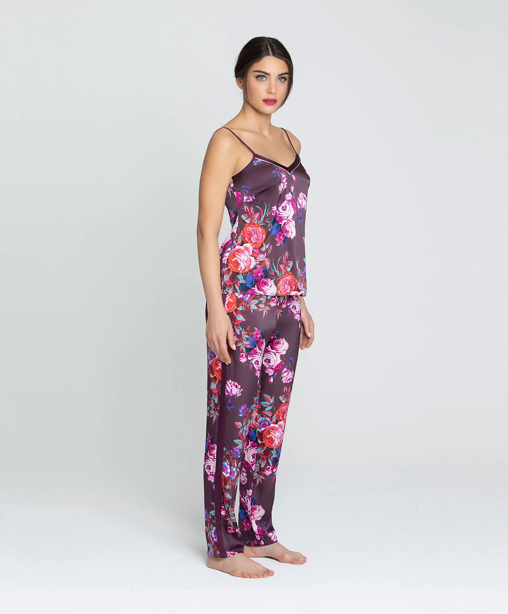 Pantalon en soie Lise Charmel collection Aveu en Fleurs, coloris Aveu Pétale (=prune).