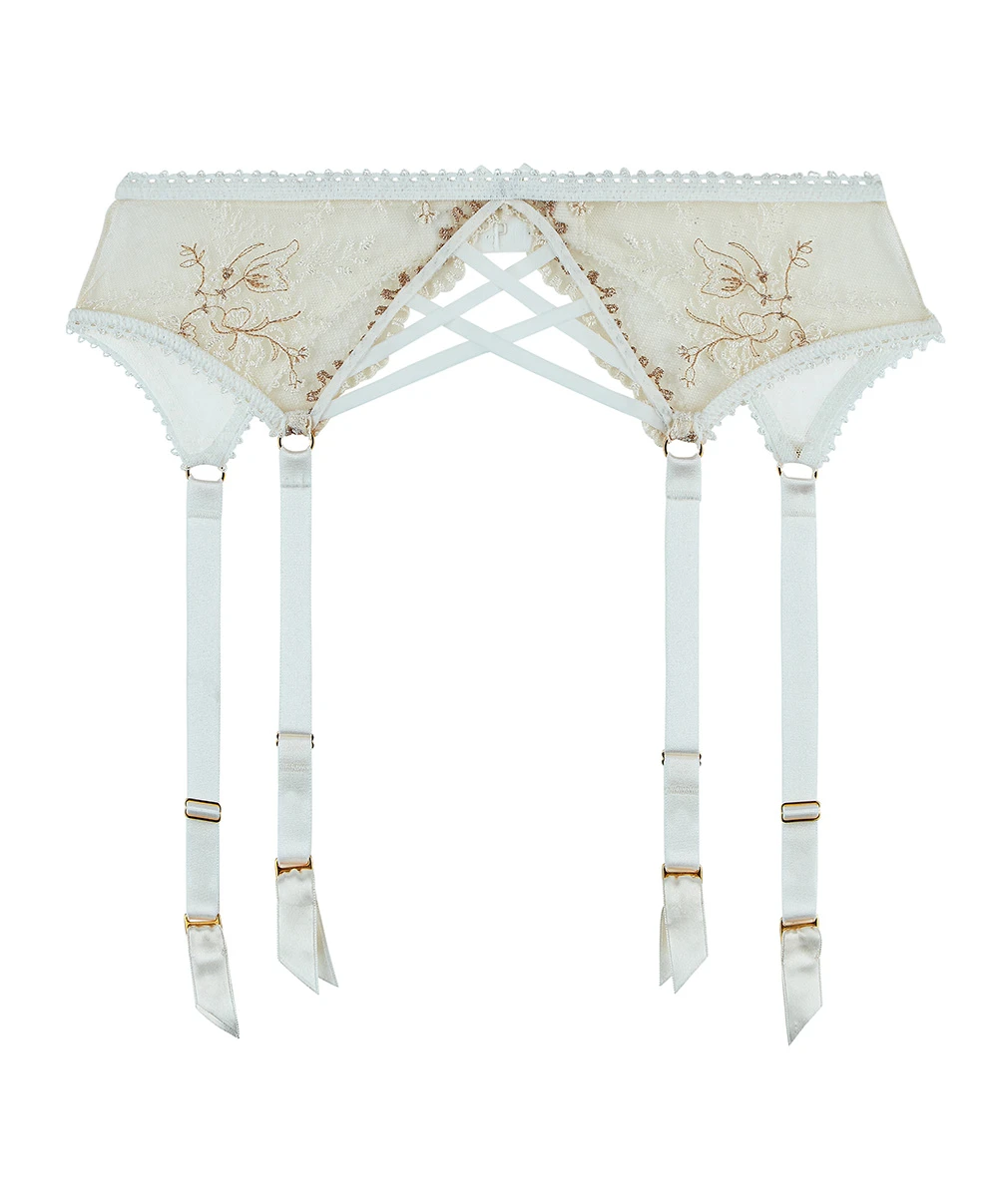 Porte-jarretelles sexy collection Trésor Infini de chez Aubade, coloris white wind.