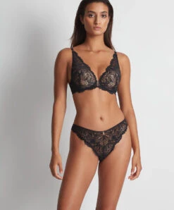 Une ligne élégante et délicate avec la combinaison exquise entre la richesse d’une broderie suisse ornementale et des bandes guipures française très sexy. Un petit bijou à porter !