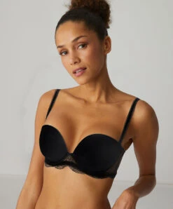 Soutien-gorge bandeau coque avec armatures bretelles amovibles Simone Pérèle collection de lingerie permanente Karma coloris noir.
