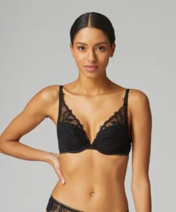 Soutien-gorge push-up décolleté plongeant Simone Pérèle collection de lingerie permanente Bloom coloris noir.
