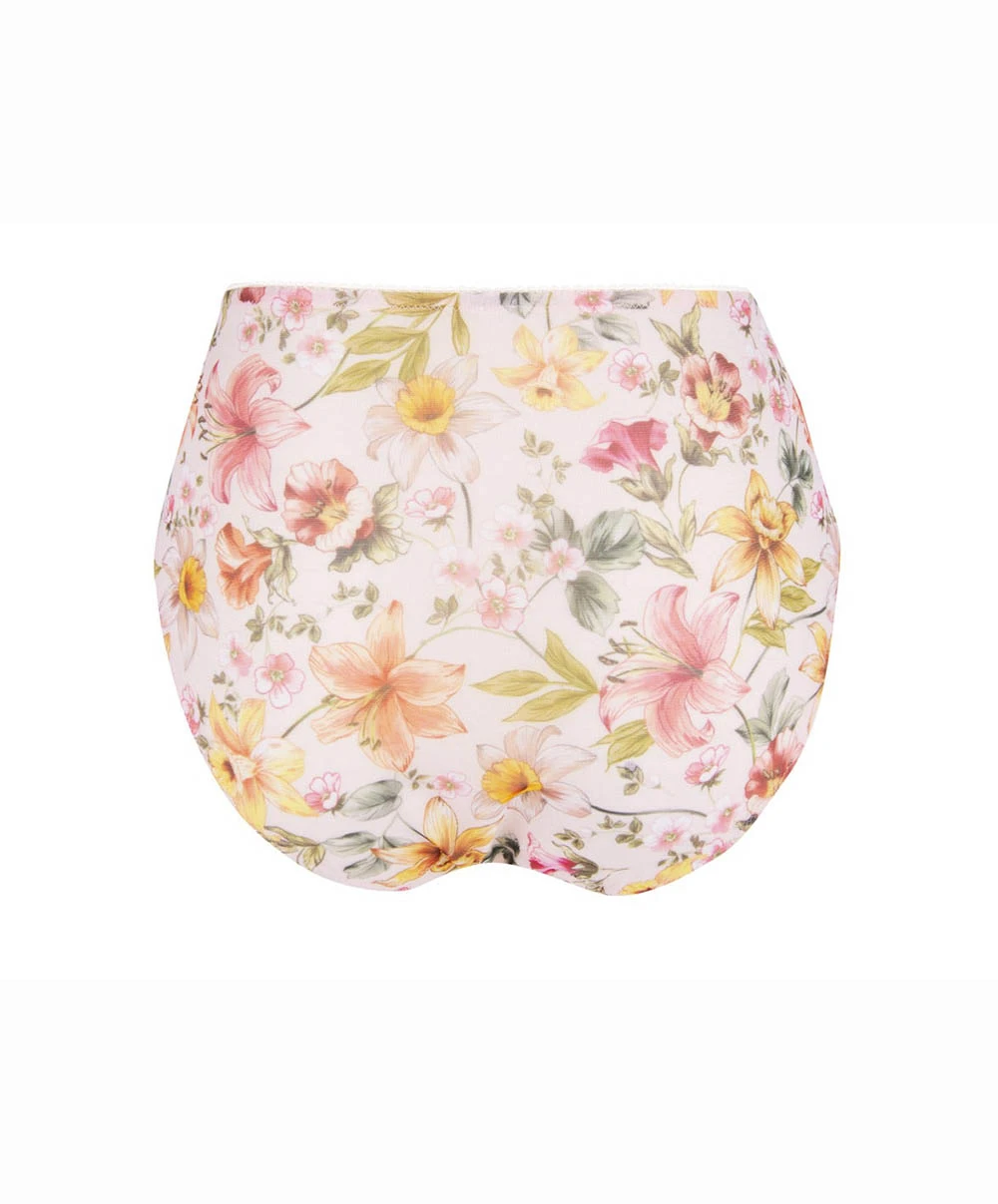 – Milieu devant et dos en tulle imprimé. Cuisse devant et empiècements en tulle brodé festonné, devant doublé.