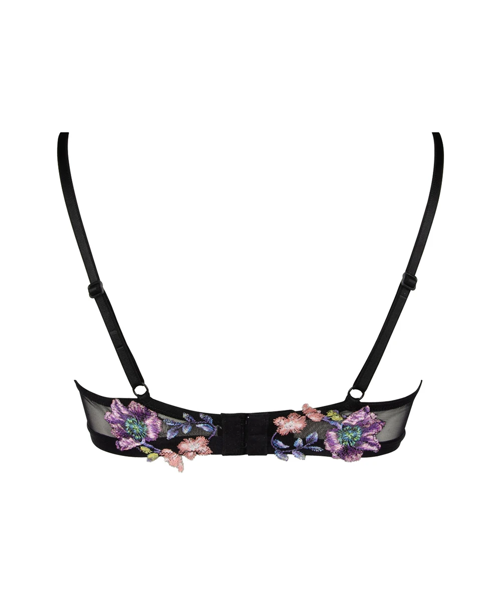 Soutien-gorge armature Lise Charmel collection Flora Aura, coloris aura pastel (broderie multicolore pastel sur fond noir).