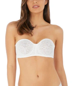 Soutien-gorge bandeau en dentelle bretelles amovibles multi-positions collection de lingerie permanente Wacoal Halo Lace, coloris ivoire.