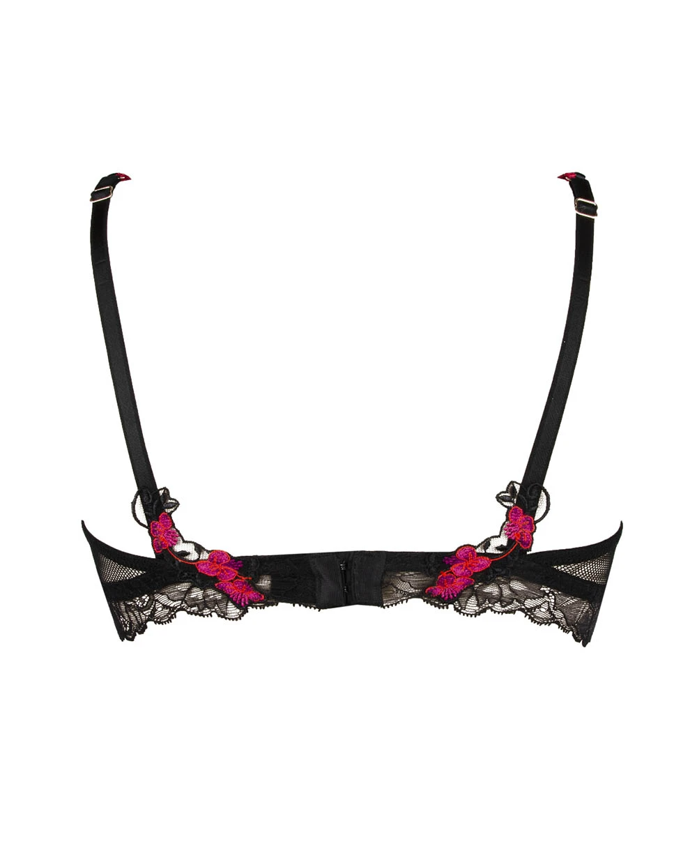 Découvrez un sous-vêtement français sur le thème de l’amour et de l’audace. Une explosion de couleurs joyeuses inonde ce soutien-gorge lise charmel comme une ode au printemps et à la sensualité de la femme. La richesse et la qualité des matières utilisées nous surprendra toujours : une dentelle leavers, une dentelle fuseaux et une résille jouenet sur la transparence des différents fonds pour mettre en valeur les motifs colorés (rose, violet, rouge…). L’élasticité des mailles offre un confort et un maintien unique. La broderie luxueuse fabriquée en Italie se pare de motifs de boutons de fleurs stylisés et des feuillages épurés d’une grande légèreté. Pour information la dentelle aux fuseaux est réalisée sur des machines centenaires avec un savoir faire spécifique. Vous avez ici une création unique et rare qui apporte un véritable plus à votre dessous.