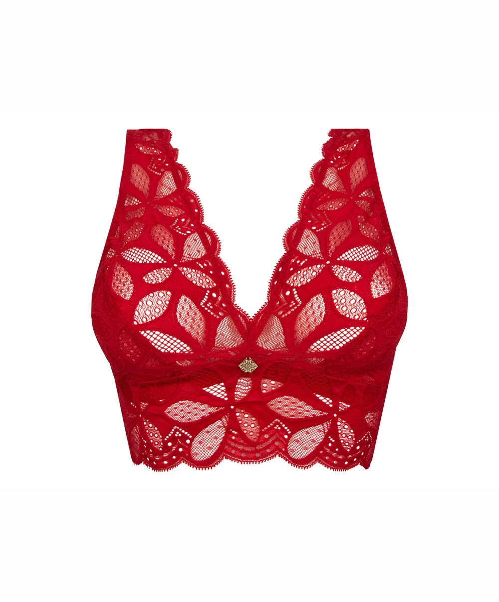 -Cet article de lingerie sexy offre une forme « foulard » et un décolleté plongeant très sexy avec ses bonnets triangulaires ce qui en fait une pièce tendance avec un petit côté rétro chic de lingerie vintage. Cette brassière se rapprochant du style « bralette » (pour utiliser un néologisme venu de l’Anglais) possède une basque plutôt large toute en dentelle et un décolleté plongeant séducteur et vous permettra de vous libérer de la contrainte des armatures. Celles qui n’ont pas froid au yeux la porteront seule ou la suggèreront de manière très sexy sous un chemisier ou une veste par exemple. Sa coupe peut aussi s’apparenter à un crop top en dentelle.