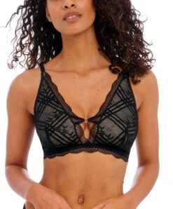 Soutien-gorge brassière sans armatures en dentelle bralette collection permanente de dessous sexy Freya Fatale de la maison Freya lingerie, coloris noir.