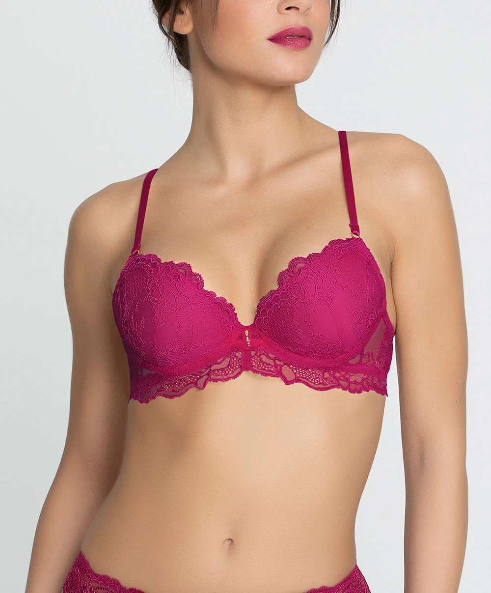 Soutien-gorge coque ligne Sublime en Dentelle de la marque de lingerie française Lise Charmel, coloris Fuchsia Sublime.
