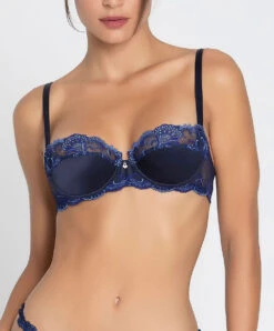 Soutien-gorge corbeille en soie Lise Charmel collection Splendeur Soie, coloris Splendeur Bermudes (=bleu marine).