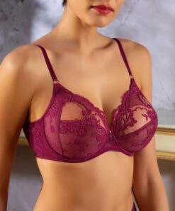 Soutien-gorge couvrant grande taille à armatures ligne Sublime en Dentelle de la marque de lingerie française Lise Charmel, coloris Fuchsia Sublime.