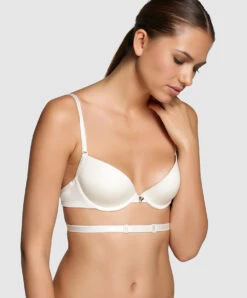 Soutien-gorge dos nu multipositions (bretelles amovibles) Mode Pure de chez Lise Charmel. En maille ultra-douce et confortable pour un toucher soie, ce soutien-gorge possède des coques moulées lisses qui sublimeront votre poitrine en lui apportant un joli arrondi, un excellent maintien et un bien-aller parfait. Vous craquerez pour le bijou « LC » doré serti de strass Swarovski à l’entre-gorge pour un effet précieux. Ce soutien-gorge Lise Charmel est 100% invisible et modulable ! Idéal pour les femmes à la recherche d’un dessous à la discrétion totale, ce soutien-gorge invisible multiposition pourra se porter de diverses façon (forme classique, tour de cou, bretelles croisées pour décolleté profond au dos,…). Un must-have de votre commode lingerie !