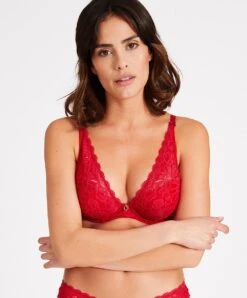 Soutien-gorge foulard triangle plunge effet push rouge de la collection lingerie permanente Rosessence par Aubade Paris.