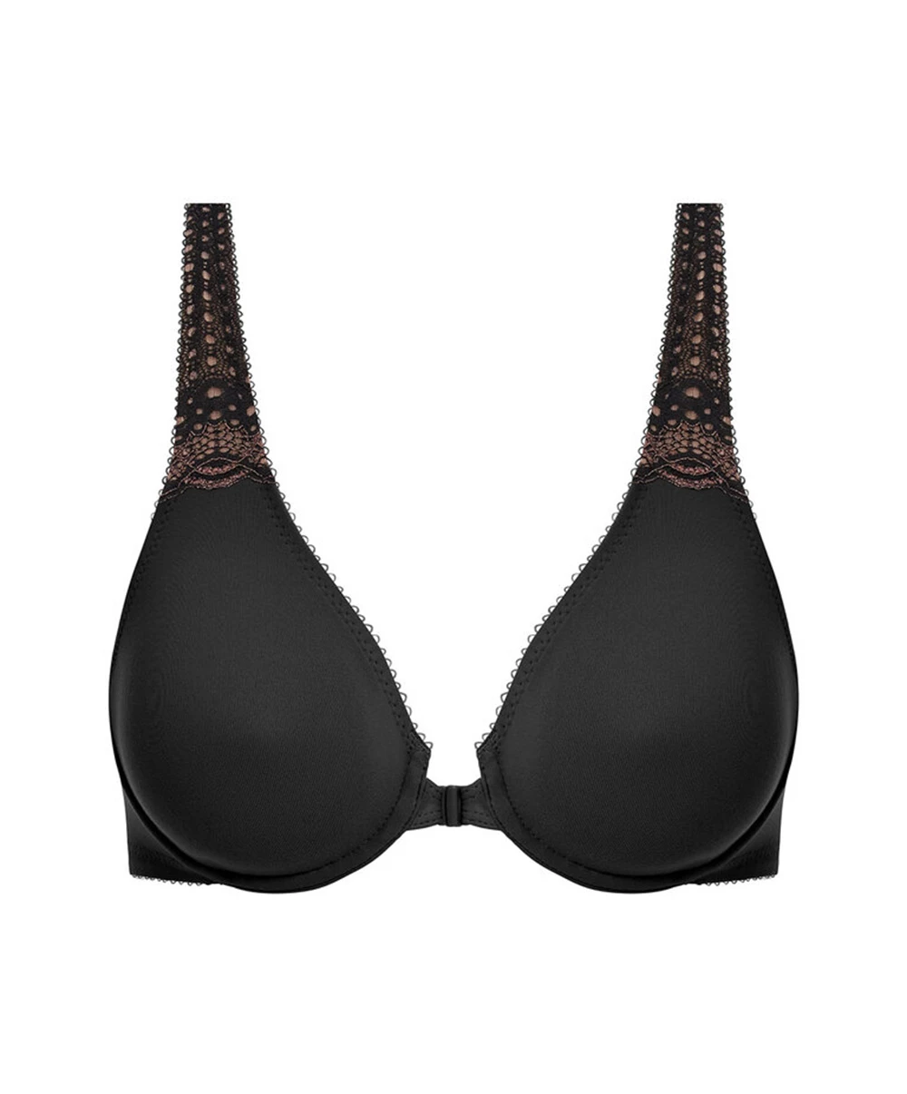 Soutien-gorge ouverture frontale lisse décolleté plongeant collection de lingerie quotidienne Soft Embrace coloris noir par Wacoal.