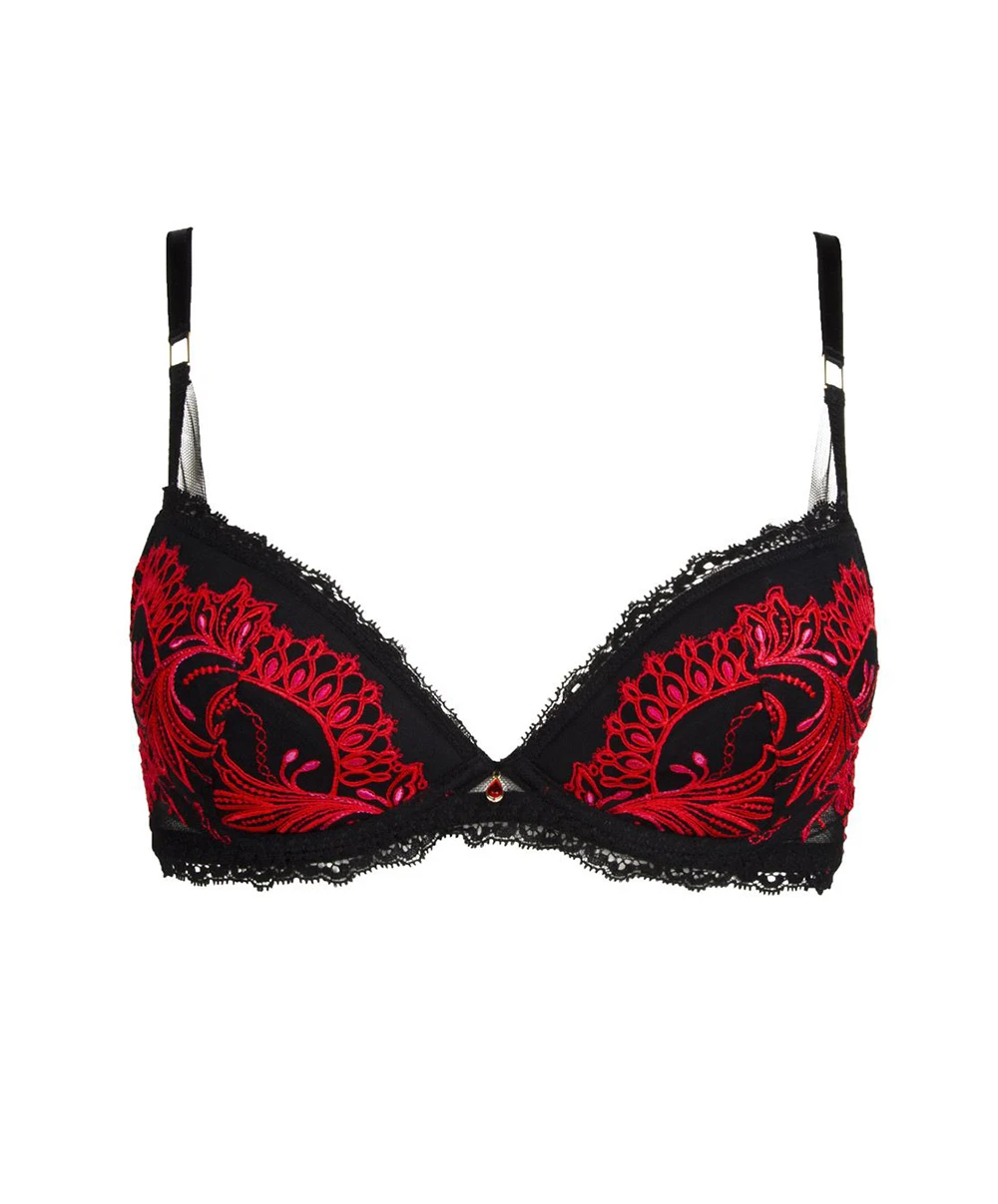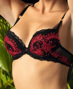 Soutien-gorge push-up noir et rouge collection Invitation Sexy de chez Lise Charmel.