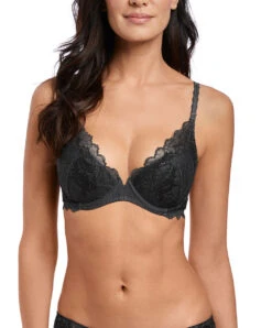 Soutien-gorge push-up plunge Wacoal de la collection Lace Perfection, coloris charcoal (=gris anthracite).