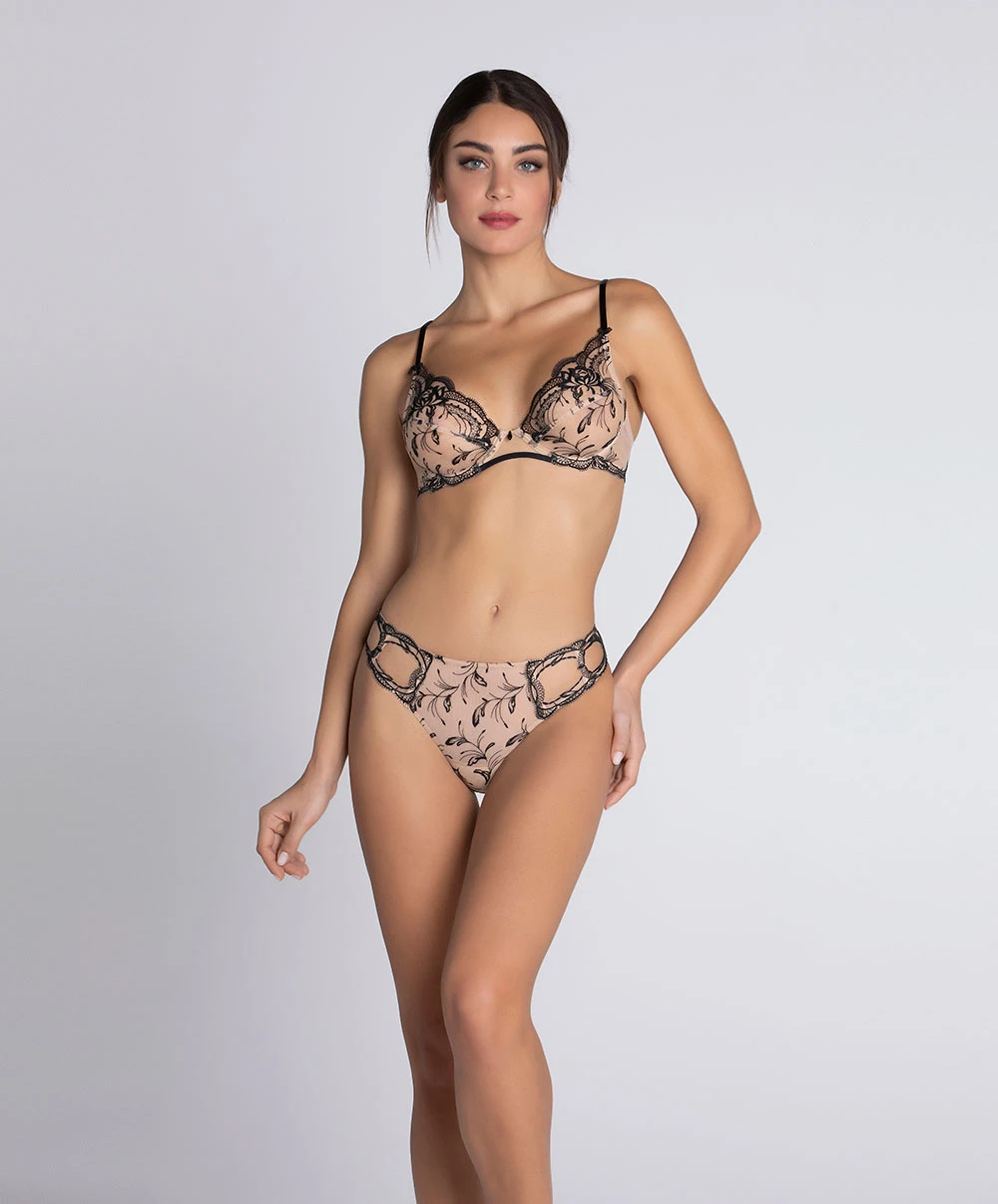 Soutien-gorge sexy triangle « Glamour » Lise Charmel de la collection lingerie de charme Follement Sexy en coloris nude sexy.