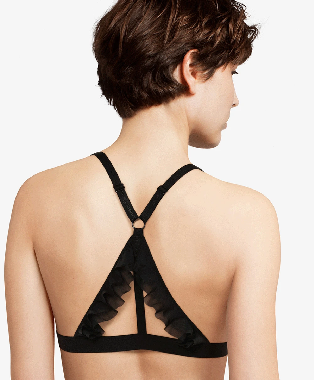 Soutien-gorge triangle sans armature Chantal Thomass de la collection lingerie sexy Abysse, coloris noir.