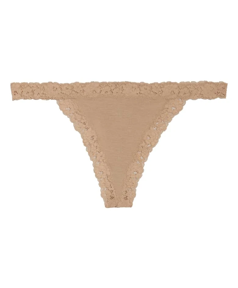 String modal de la collection Insta Ready par B.tempt’d. Ce string incarne à la fois une lingerie sexy mais aussi incroyablement confortable. Confectionné en coton modal ultra-doux, ce tanga B.tempt’d assure un confort ultime pour un usage quotidien le tout réuni dans un écrin des plus glamours. De jolies festons en dentelle ornent les contours de ce dessous chic en vous procurant une allure très féminine. Les bordures dentelées latérales ont pour effet visuel d’allonger vos jambes et évite que le string ne roule. La coupe très dégagée au dos qui révèle vos fesses de manière très suggestive vous assure une invisibilité parfaite sous vos tenues (même les plus moulantes) et vous garantissent un sex-appeal décuplé. Associez ce dessous sexy au soutien-gorge plongeant ou à la brassière de la même collection et vous obtiendrez une superbe parure lingerie de charme.