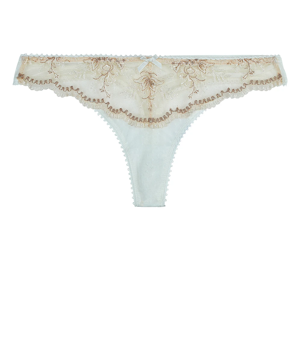 Tanga sexy collection Trésor Infini de chez Aubade, coloris white wind.