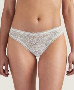-Dessous chic faisant la part belle à une dentelle couleur perle ajourée représentant les fleurs et les pétales de la mythique rose d’Ispahan pour une silhouette à la fois romantique et glamour.